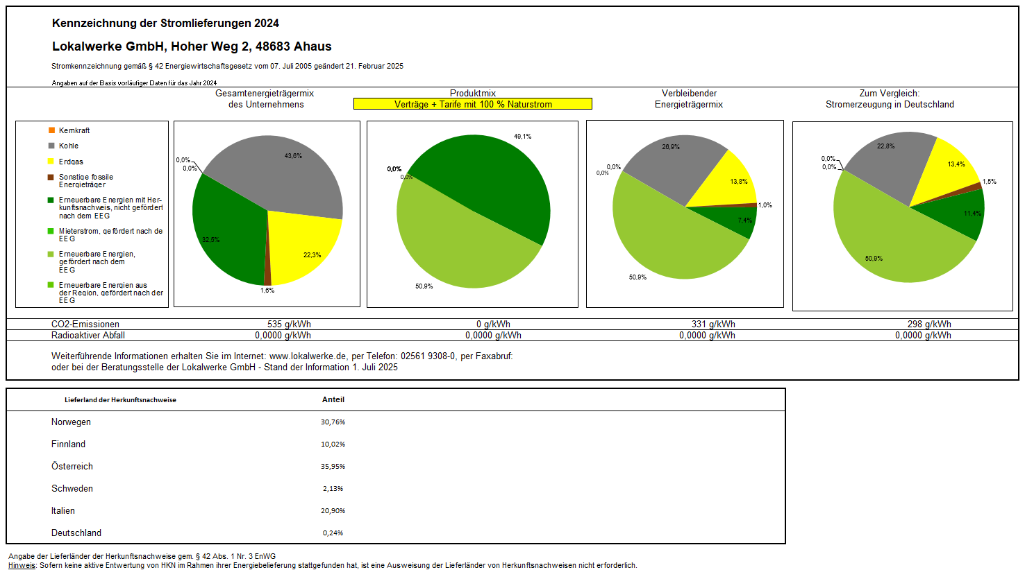 Strom aus 100% Wasserkraft - unsere Zertifikate: